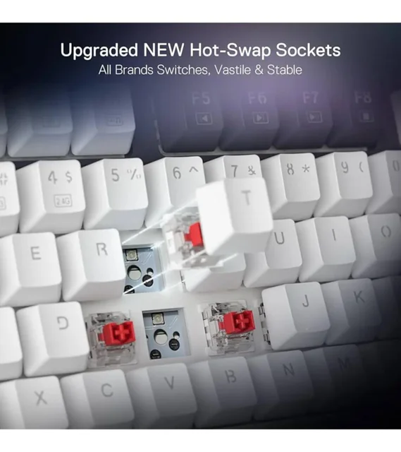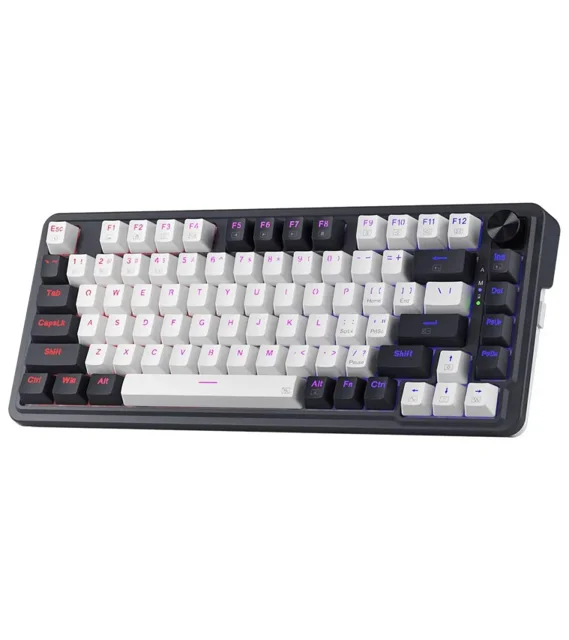 کیبورد گیمینگ Redragon GEB K673 WB یک کیبورد مکانیکی 75٪ با 81 کلید است که از اتصال سهحالته (USB-C، وایرلس 2.4GHz و بلوتوث) پشتیبانی میکند. سوییچهای خطی Red، ساختار Gasket Mount، قابلیت Hot-Swap و باتری 3000mAh، این کیبورد را به گزینهای سریع، کمصدا و حرفهای برای گیمینگ و تایپ تبدیل کرده است.