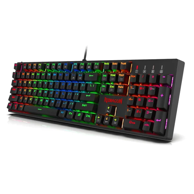 کیبورد Redragon SURARA K۵۸۲ با سوییچهای خطی Outemu Red کمصدا، نورپردازی RGB با افکتهای متنوع، کلیدهای مالتیمدیا و ویل تنظیم صدا و نور، یک کیبورد مکانیکال حرفهای و ایدهآل برای گیمینگ و استفاده روزمره است.